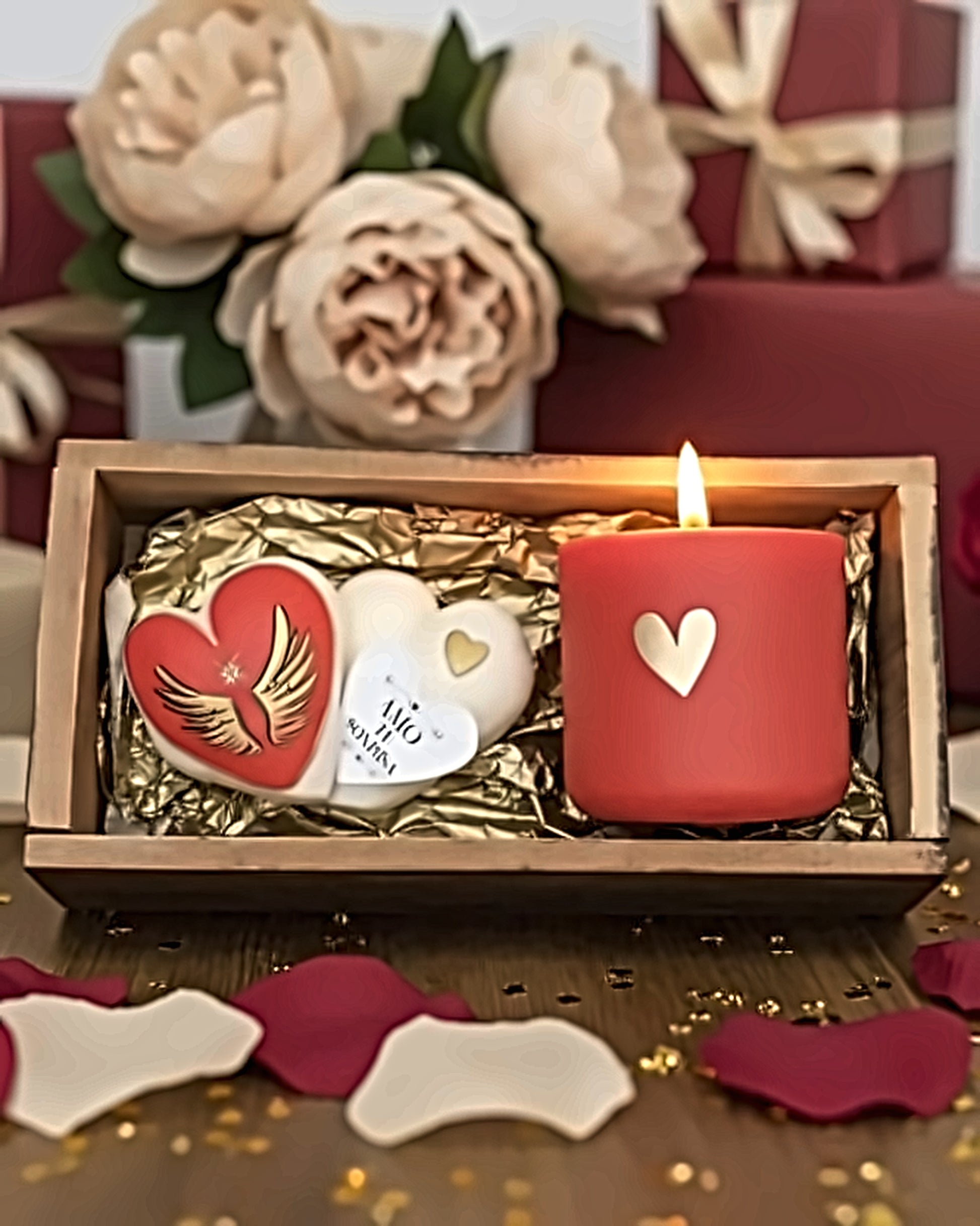 Set de contenedor concreto pintado a mano . Aroma Apple Champagne y corazón doble de cera pintado a mano. Aroma fresas con crema.